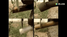 3. 锉刀演示:士兵用工兵铲的锉刀部分对木材进行加工,锉刀锋利,加工效果良好。